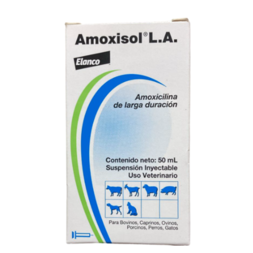 Amoxisol L.A Inyectable es un medicamento veterinario que contiene amoxicilina en forma de una solución inyectable de acción prolongada. La amoxicilina es un antibiótico de amplio espectro que se utiliza en animales para tratar infecciones bacterianas en el tracto respiratorio, urinario, gastrointestinal y otras áreas. La presentación de acción prolongada permite una liberación gradual del medicamento, lo que puede reducir la frecuencia de administración. Amoxisol L.A es recetado por veterinarios para tratar una variedad de condiciones infecciosas en diversas especies. Siempre sigue las indicaciones y la dosificación recomendada por el profesional de la salud animal para garantizar un tratamiento efectivo y seguro.