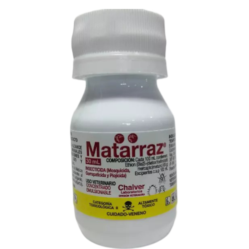 MATARRAZ® es un insecticida externo indicado para el control de infestaciones por garrapatas (Boophilus microplus y Amblyomma cajennense), moscas hematófagas (Haematobia sp., Stomoxys sp.) y piojos (Haematopinus sp., Linognathus sp., Trichodectes sp.) en bovinos.